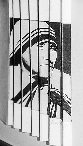 Right Wing Crucifix, 15" x 22", lithograph with graphite, ink and gold leaf, 2014