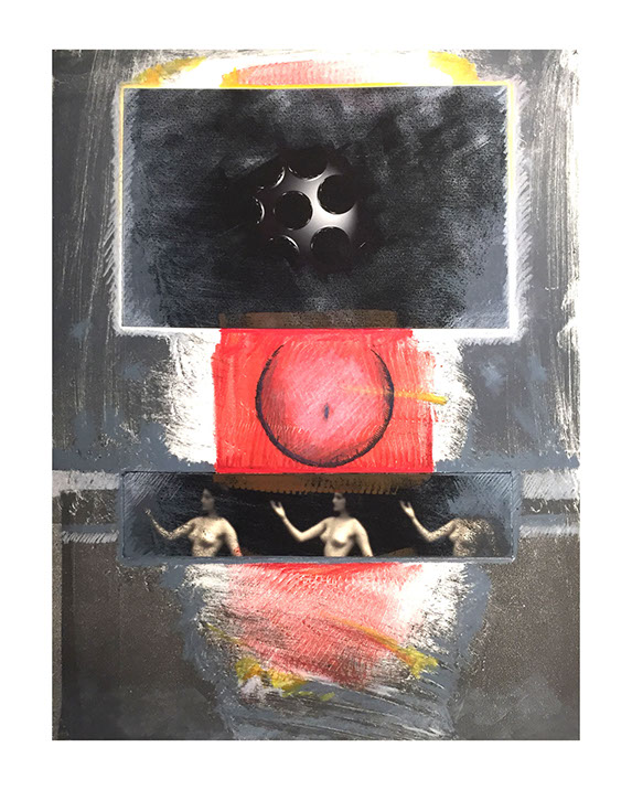 Hand Out, 16" x 22", monoprint with chine colle and chalk 2015