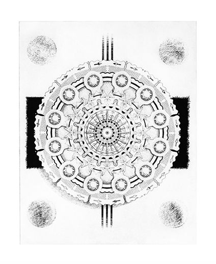 Hawk Hill Mandala, 11" x 16", intaglio polymer plate etching, 2013